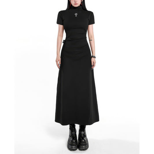High Neck Side Slit Midi Dress