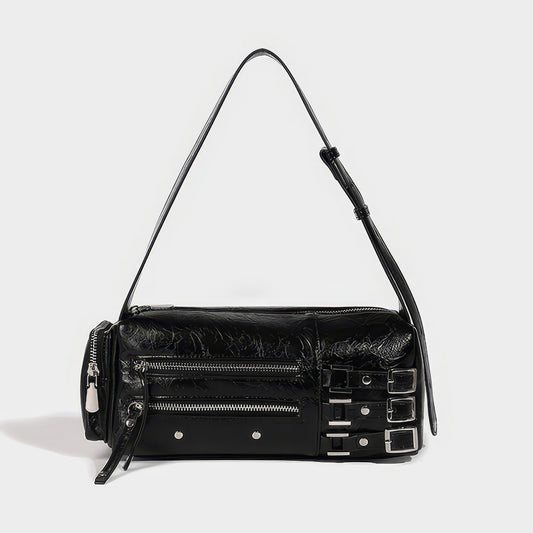 Glossy Buckle Strap Barrel Shoulder Bag